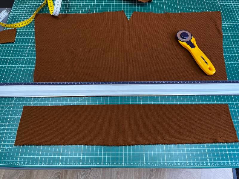Om rechte delen stof te knippen gebruik ik altijd mijn snijlat, snijmat en rolmes. Want met een rolmes kun je ook heel goed stof recht snijden in plaats van knippen. Waar je bij knippen vaak wat hakkeltjes ziet, krijg je bij het snijden van stof met een rolmes juist een hele vloeiende snijrand in je stof.